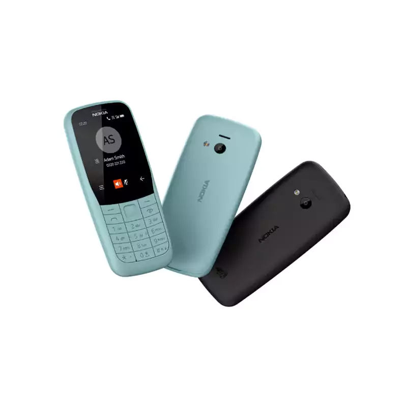 هاتف نوكيا 220 3G أنيق وخفيف مع شاشة مريحة وحماية من الضوء الأزرق ومستشعر بصمة لفتح آمن.